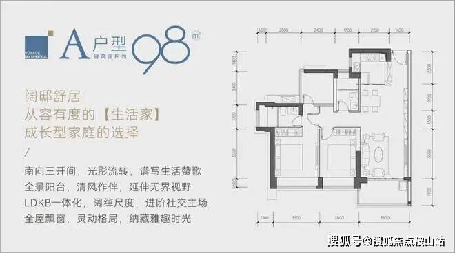 98㎡的3房2厅2卫,设计的是经典竖厅格局,LDKB一体化设计,客厅3.6米开间,三开间朝南,动静分区,3个卧室分别做到了主卧13.69㎡/次卧11.62㎡/次卧5.76㎡(包含墙体飘窗),都不用搭配飘窗做床,L型厨房,卫生间干湿分离,得房率约:89%(包含赠送),西南、东南或正南朝向。