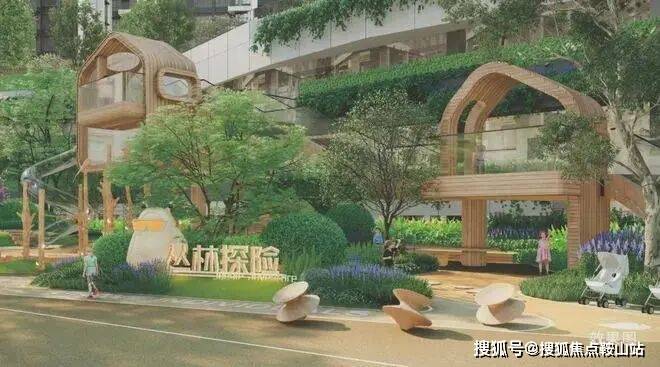 设置瞭望塔、树屋、攀岩墙等分龄段游戏区,高绿量的户外亲子互动场地。