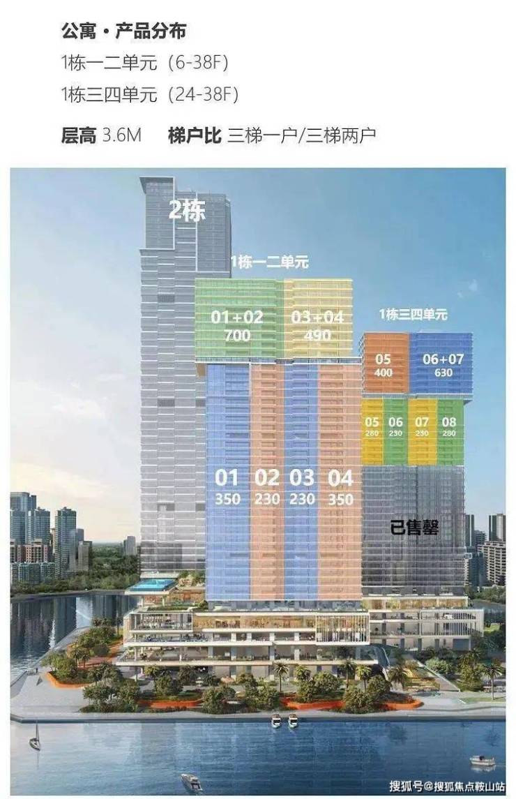 【户型亮点】:一层一户,仅6席。五房四套房设计,主卧L形全景落地窗,270°最佳观海位。南向超大三厅一体,动静分区布局有序。【一栋 三、四单元】高区(33-38层)三梯一户