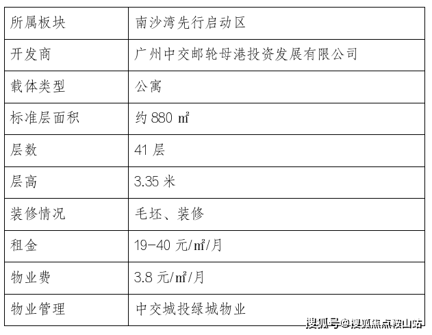 中交国际邮轮广场项目占地约7万方,总建面约35万方,建成于2021年。作为广东省十大重点建设项目之一,以“四核驱动,全维资产”作为建设方向,将大型港口、航站楼、主题酒店、旅游娱乐、高端住宅、超甲级写字楼等融于一体,建成复合型、立体化及多元化开发的国际一流的邮轮观光综合体,是广州未来的新名片。入驻本项目的合资格企业除可享受双十五税收政策,符合条件的入驻企业可叠加享受财税集聚区、国际海事服务集聚区政策。