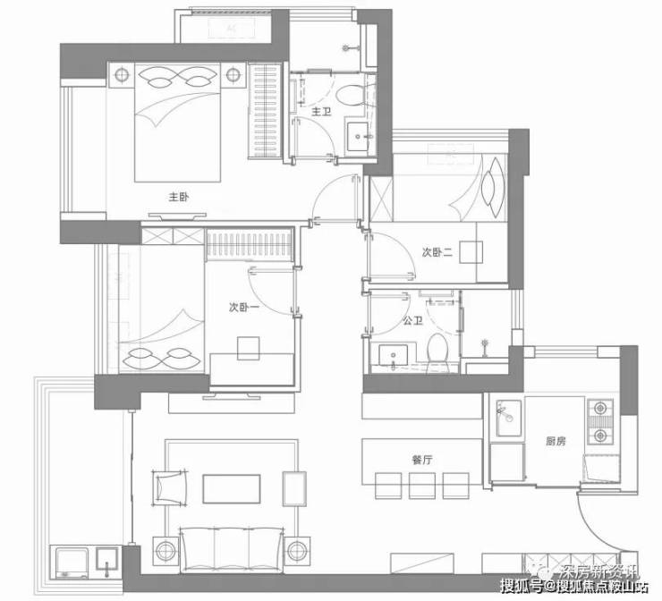 04/05户型三房两厅两卫(东南)折后330-360万左右
