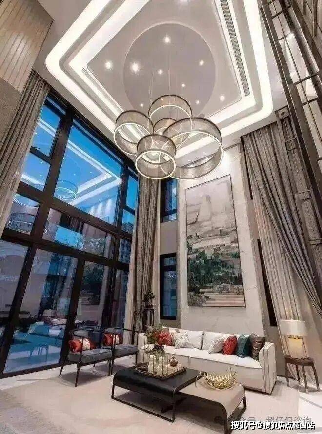 ⑥首层注重社交功能,7.2挑高客厅,超10M面宽,近20㎡的中西厨,还原煊赫大宅该有的尺度。二层更为私密,是全家共享天伦的空间。