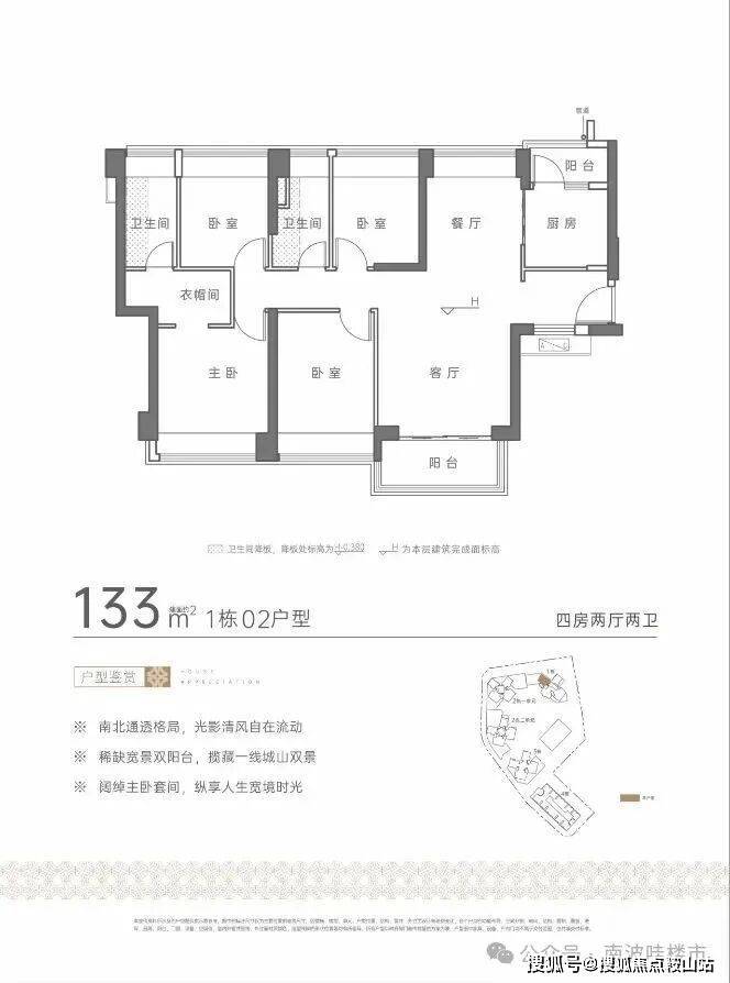 →归心生活:建面约110-133㎡城山双景,南北通透、稀缺双阳台,全系品牌精装,非凡品质臻享