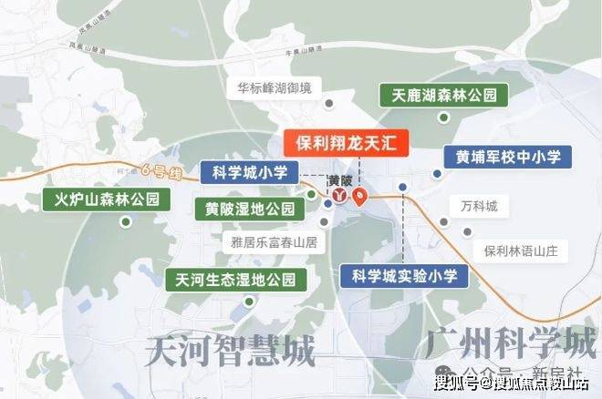 保利翔龙天作为科学城和智慧城交汇处,与天河一路之隔,优越的区位选址,让项目可同享天河智慧城与科学城双城的发展利好。是“天河东门户”,左右逢源:左手,是科创前沿阵地天河智慧城,网易、小鹏都在这里;右手,则是广州科技城的祖师爷科学城,已进入收获期。