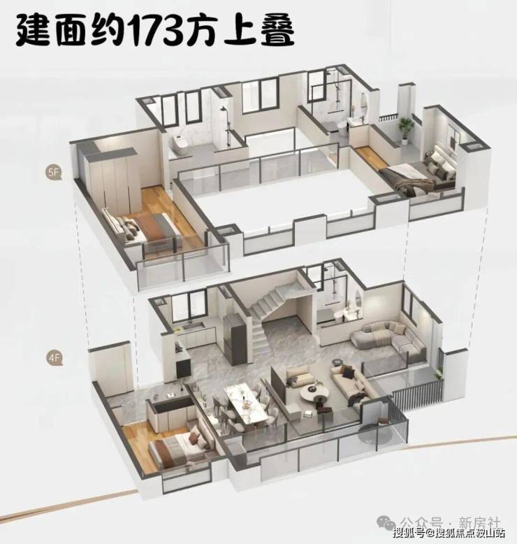 项目推出全新叠院产品,下叠建筑面积约167-176平,上叠建筑面积约173平,货量稀有,且买且珍惜。全