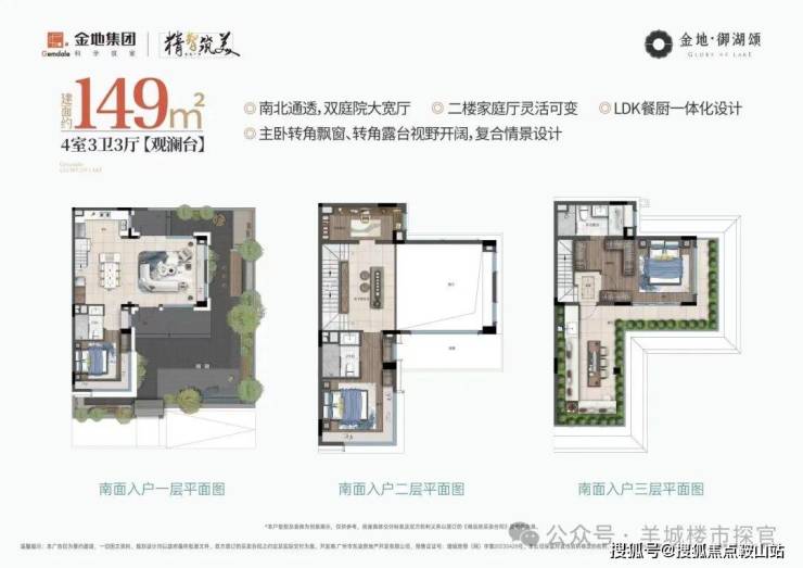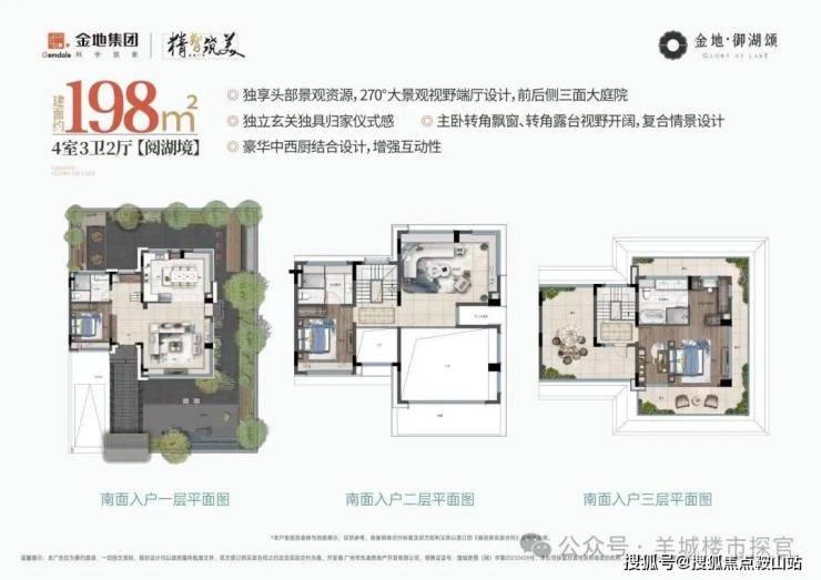 首推建面约149-198㎡合院纯墅,如149㎡和175㎡户型,独门独院,配备独立三面花园庭院和私家车位。开创性的L型围合型合院,南北双采光,厅院共生,空间格局三面环景,一层会客空间中空挑高,二、三层有套房和休闲室、超级主卧套房等。