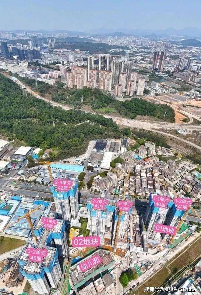 02地块:总占地面积约1.77万㎡,总建筑面积约19.67万㎡,计容建筑面积约13.71万㎡,容积率7.3,绿化率30%,共由5栋42-45层高住宅组成,其中2栋1/2单元住宅43F,2栋3单元住宅42F,3栋1/2单元住宅45F,4栋是1所9班制幼儿园。