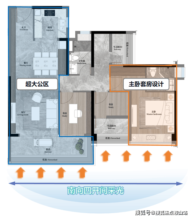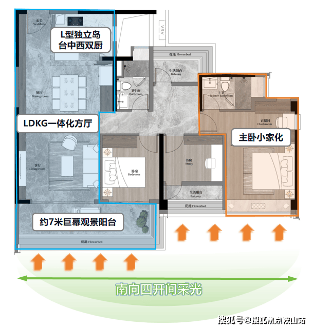 1. 户型亮点:南向四开间+高实用率