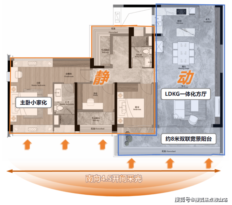 约8米双联宽景阳台,舒享宽幕生活;LDKG一体化方厅设计,给到家庭生活更多的想象空间。