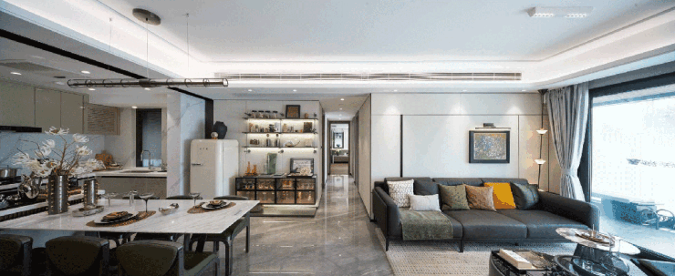 公区采用LDKG一体化设计,可以打造尺度阔绰的大方厅,成为一个无界的互动场。
