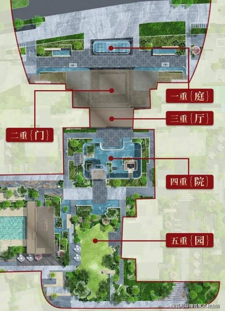 观双轴,十大主题庭院:礼序前庭、琉光下沉式庭院、游泳池、社区会客厅、轻氧健身、亲子乐园、社区慢跑场等十大主题景观庭院。