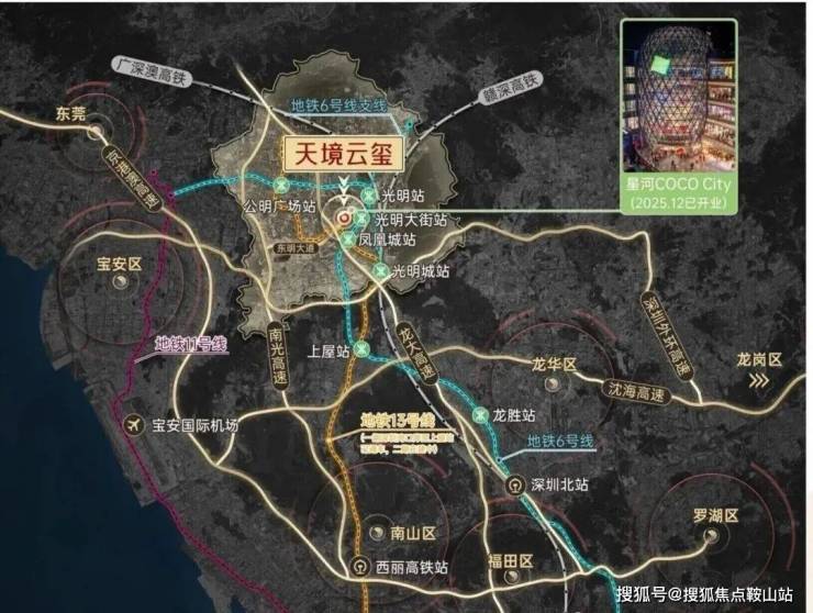 双地铁地铁便利接驳:地铁6号线+地铁13号线——距离6号线光明大街站约1.3公里(步行需要20分钟),凤凰城距离约2.1公里(步行需要30分钟),其中凤凰城可换乘13号地铁线,预计2026年全线开通运营,9站到南山留仙洞,12站到南山高新园。