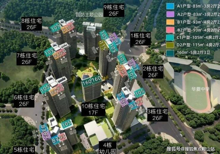 项目共由9栋17-26层高住宅组成,其中1栋至9栋住宅26F,10栋住宅17F,4栋是1所9班制幼儿园,规划有游泳池,羽毛球场,健身场地,托育机构。总规划1082户,10栋楼王2梯2户,9栋2梯3户,6-8栋2梯5户,其它栋数都是2梯6户设计,地下室有1层,规划1222个车位,车位占比约1:1.13。