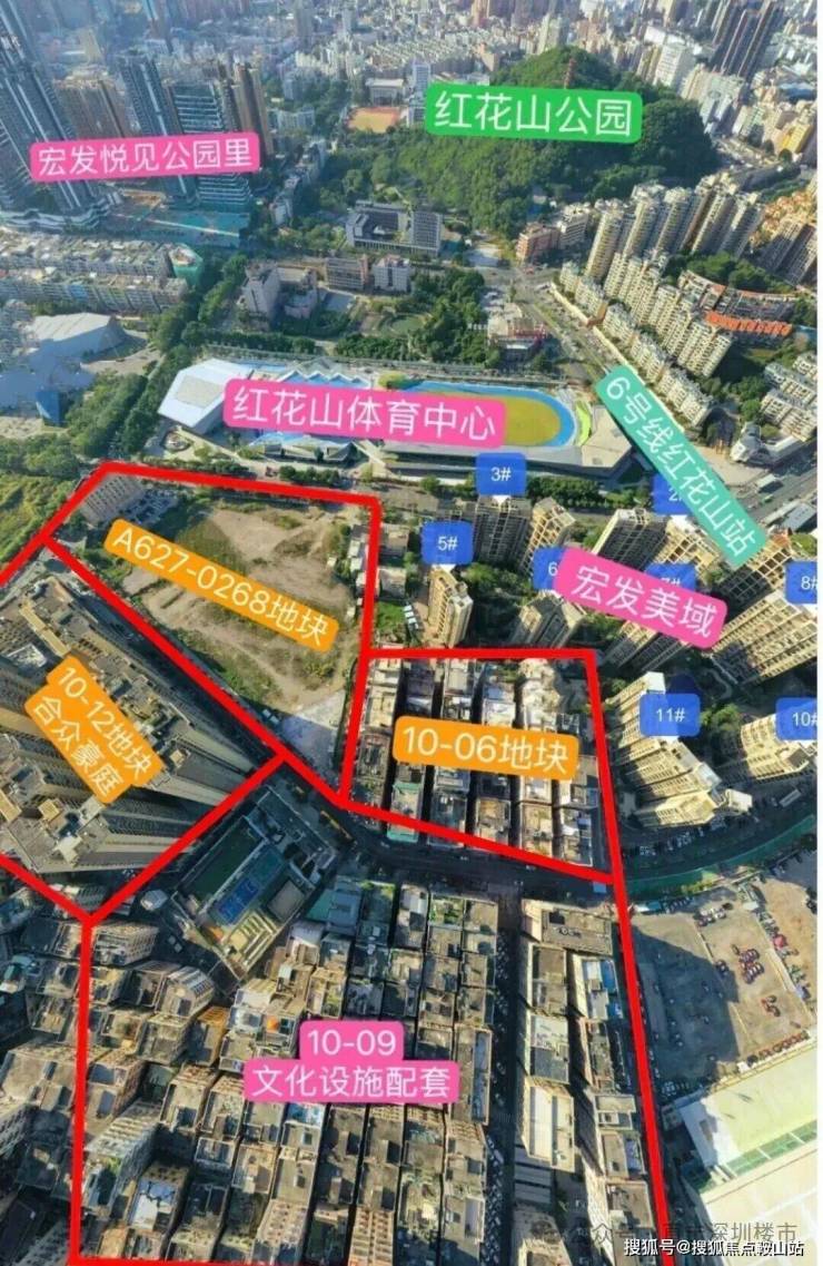 地块周边目前有三个在售项目,还有一些成熟住宅区,居住氛围较好。但周边较多城中村和工业园区,片区环境仍需要较长时间改善。当前周边在售项目备案价格4.4-4.7万/㎡折后价格在3-3.8万左右,离得最近的新房是宏发悦见公园里,折后均价3.7万左右,二手项目均价约4-4.6万/㎡。