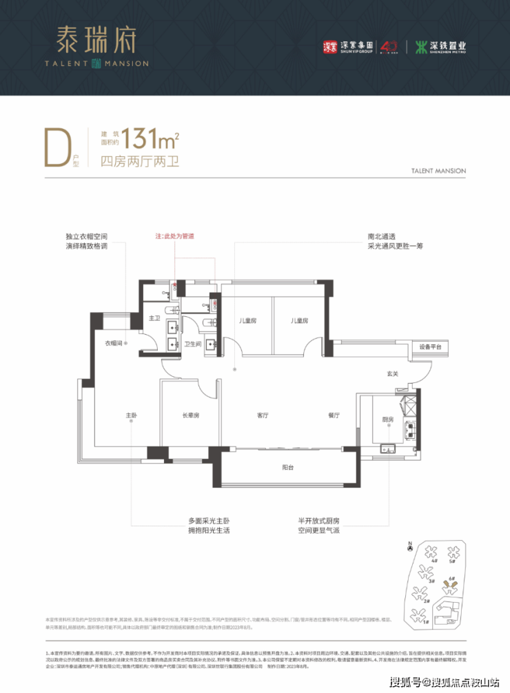 由深业集团和深铁集团联合开发,总占地面积约2.9万㎡,总建筑面积约21.6万㎡,计容建筑面积约15.3万㎡,容积率5.29,绿化率42%,共由6栋26-47层住宅组成,其中1栋商品房43层,2/3栋商品房47层,4栋保障性住房43F,5栋保障性住房44层,6栋商品房26层,7栋是1所18班幼儿园。