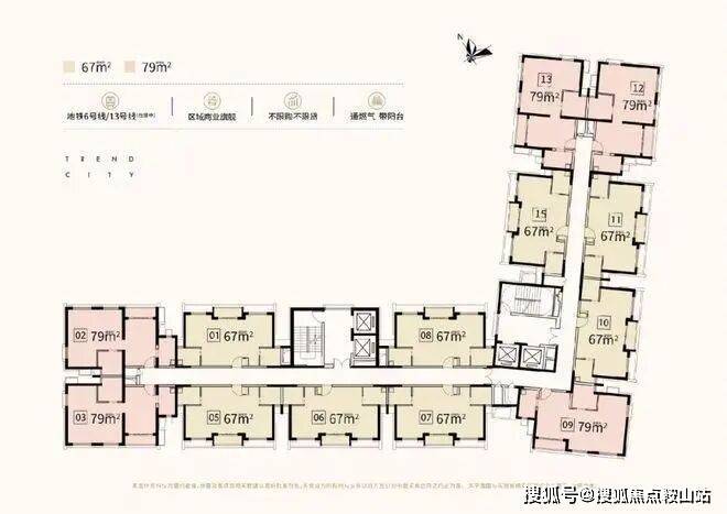 “L”形布局,避免楼道狭长的局促感,提升居住体验;电梯分区后,候梯时间减少,人流动线自然分散,提高您的出入效率。