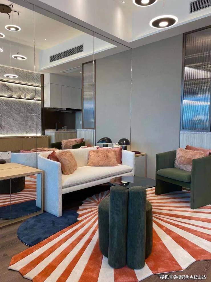 项目特别打造3.7米口岸封面臻席实体展示空间,样板间整体采用温暖素雅色调,配上自然线条和淡雅系软装,结合墙体镜面,给人以舒适的空间感。