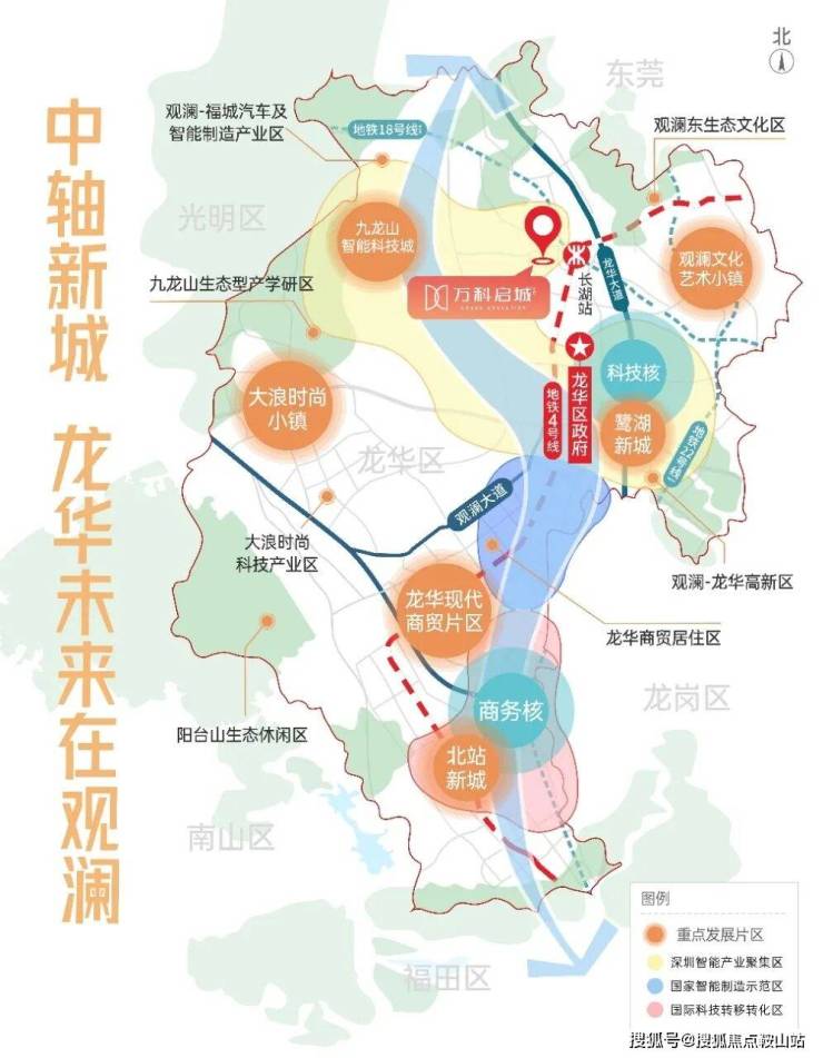 4号线延长线长湖站地铁口物业,9站直达深圳北,实际距离福田CBD20公里,约30分钟直通香港西九龙,未来片区规划有地铁18号线(规划中)、22号线(规划中);两纵(梅观高速,观澜大道),两横(沈海高速、外环高速),快速通达罗湖、福田、南山三大中心区。