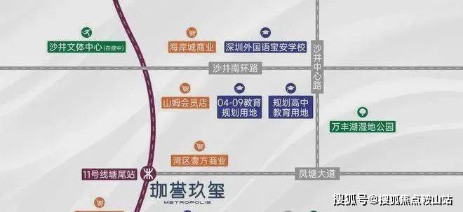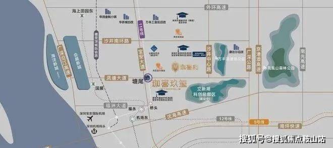 项目位于沙井新桥,珈誉府本身是一个大型综合体,自身配套丰富,自带50万㎡大型商业;地铁11号线塘尾站挨着项目,深圳外国语宝安学校在项目南北两侧,且靠近万丰湖、立新湖,有生态资源。