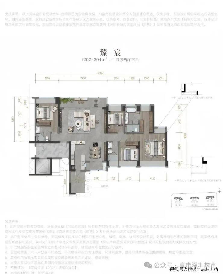 204㎡的4房3卫,折后总价1021-1105万/套,折后单价5.03-5.42万/㎡。