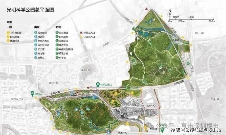 生态配套:光明中心208万占地的『科学公园』,目前已经对外开放了北翼园区,预计在2025年园区全部开通。关于光明这个大公园,我认为是深圳未来作为粤港澳湾区引擎的核心建筑标志,多年后回头望,说一定还是一个时代的精神印记,下面介绍下,『满京华·金硕臻府』一街之隔的科学公园。