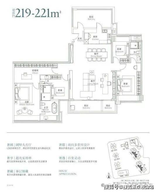 主力户型配备了“弹性方厅+环幕主卧+三面采光”的设计,不仅空间利用率高,居住舒适度也得到显著提升。