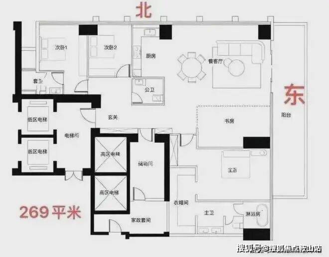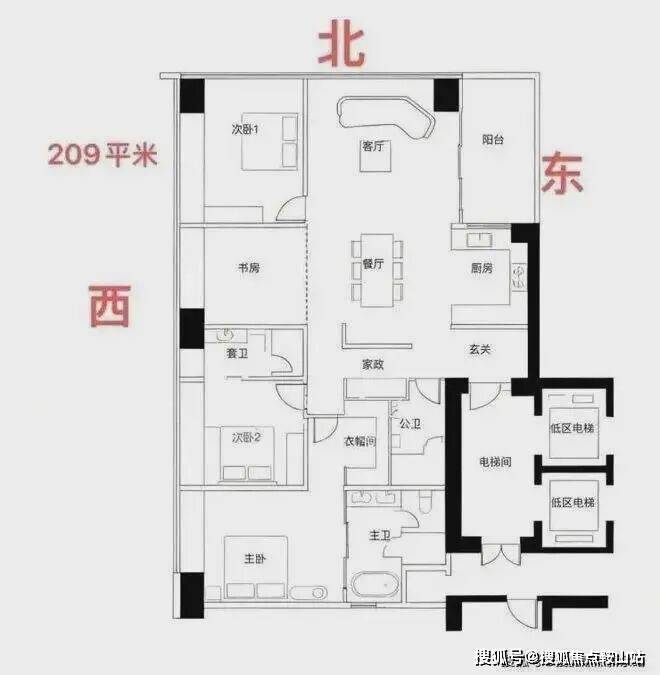 约209㎡四房三卫+家政是北区起步户型,