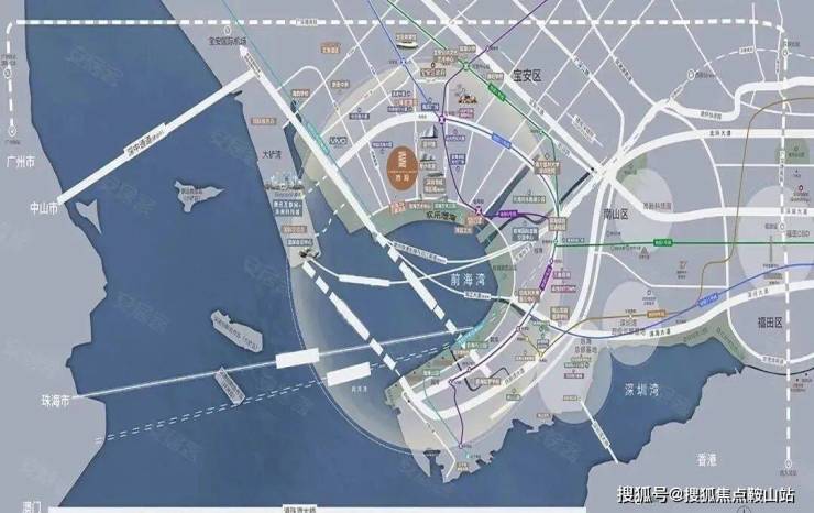 陆:亚州最大交通枢纽——前海综合交通枢纽、妈湾跨海大道、广深沿江高速、深惠城际铁路(在建)、深港西部快轨、深中通道(在建)、滨海大道、穗深城际线、深珠城际线、深茂铁路深圳段