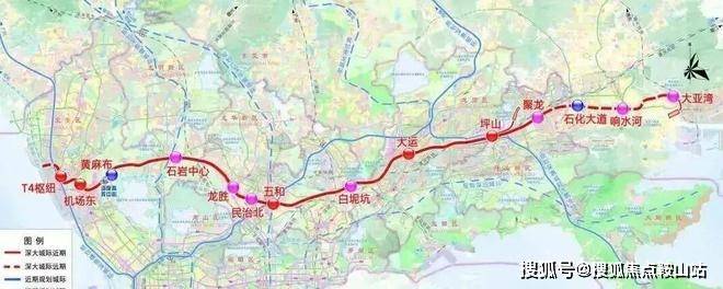 深大城际:该线路预计2026年开通,起自坪山聚龙站,终至宝安T4枢纽,线路全长约 69.2 km,线路设计速度为 160 km/h。