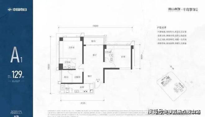 1栋一单元A1、A2户型:面积约为129㎡