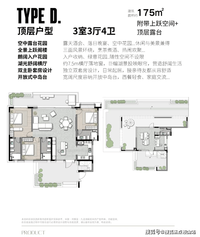 ▪️产品空间拥有宜人的尺度与丰富多变的户型设计,层层不同,户户舒展。一二层(湖景平层)带有下跃空间及前后双庭院、顶层户型设有视野极佳的景观露台… 无论居住在哪种户型,都能享受自然舒适的生活意趣。