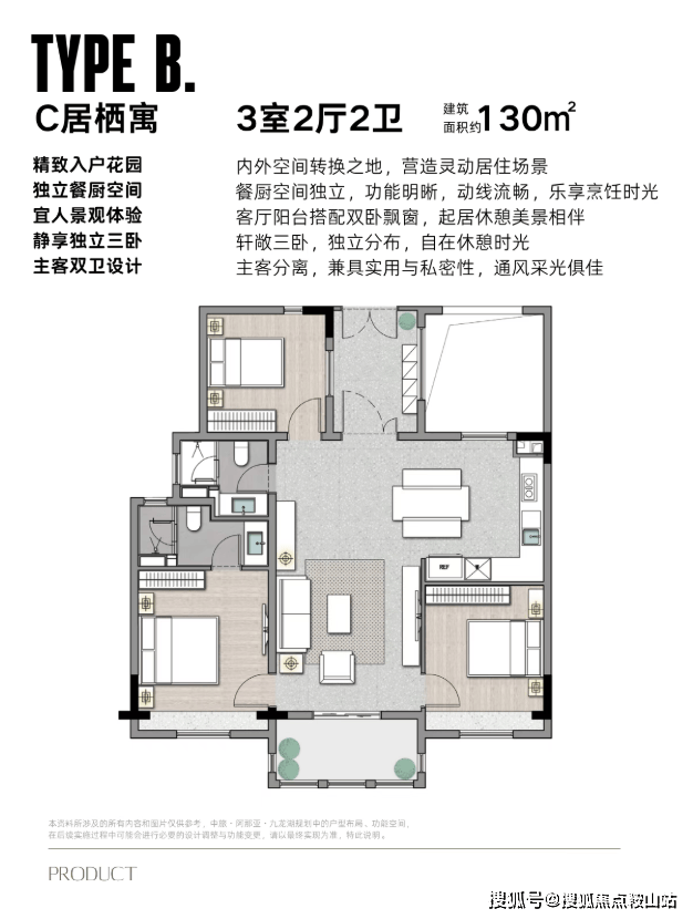 项目在售100-135㎡公寓/洋房,秉持舒适人居的理念,设计入户花园、阳台、飘窗等,与自然连接的空间, 容纳灵动的生活想象,不管是居家抑或度假,都张弛有度。精致的入户花园,打造家里的小森林, 让归家更具仪式感。阔敞的灰色空间, 灵活百变,自定义生活新场景。客厅独立景观阳台,给生活提供了灵动活跃的空间, 可观景、亦可做茶室、花园,安放多元生活品味。阳光、 清风穿堂入室,通透敞亮,连接室外景观,制造更多的浪漫想象。