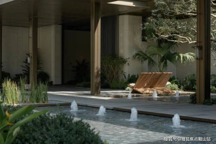“玉苑春深花满枝,实景花园映日辉”。热带雨林的奢享庭院中,紫花风铃木阵列于回廊旁,点景油柑子与凤凰木交织成荫,大面积静面水景映衬风情感艺术构架。架空层与会客平台打破室内外界限,晨起听鸟鸣,暮时观星野,生活的诗意在自然中肆意生长。
