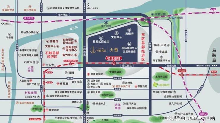 【中山108天銮】位于中山城市发展的战略中枢——岐江新城核芯区,东区总部与石岐总部交汇处,立足豪宅大道【起湾道】,坐拥南中城际【岐江道】站,尽享中山城市发展带来的高端商业、商务、教育、医疗以及生态资源。
