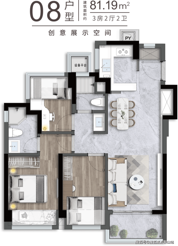 【约81平3房1卫】