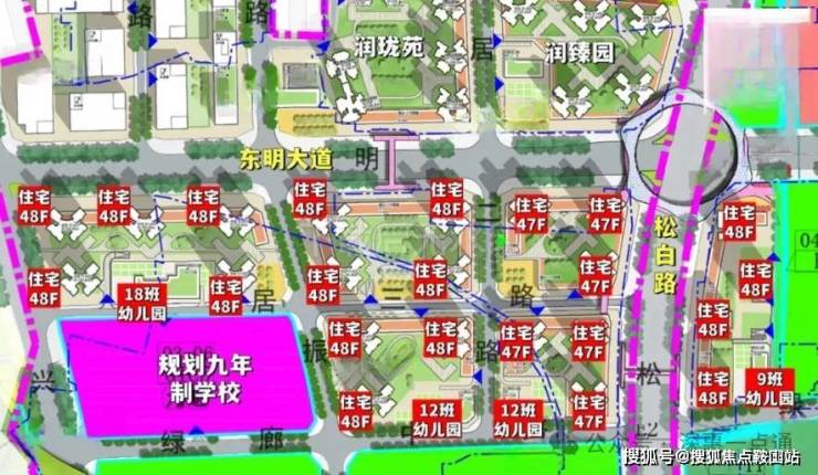 3-03地块,总占地面积约1.6万㎡,计容建筑面积约10.76万㎡,容积率6.7,共3栋住宅,总高47层,外加1所12班幼儿园(暂定,后期可能调整)。