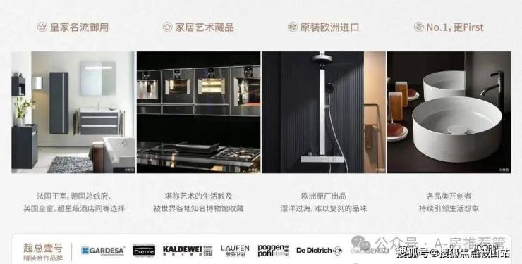 全屋精装引入诸多全球一流品牌,功能性的满足外,更看见德国皇帝、奥地利女王、超星级酒店的同等选择,世界各地知名博物馆的收藏品牌。