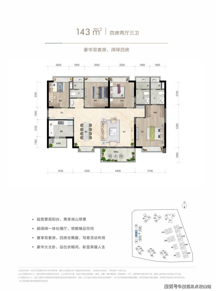 约143㎡四房两厅三卫:豪华双套房,阔绰四房