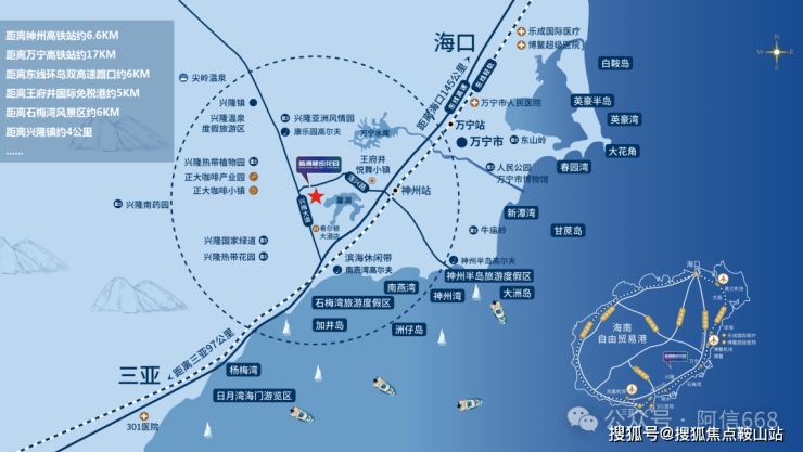 🚄高铁站:距离神州高铁站约6.6公里,万宁高铁站约17公里;