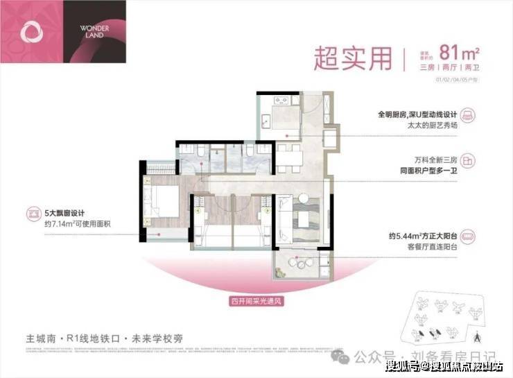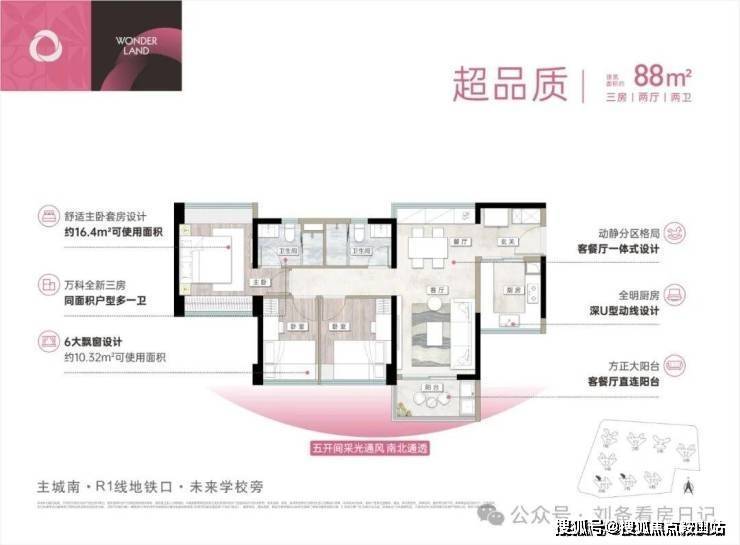 户型亮点:万科全新三房,同面积户型多一卫;采光通风俱佳