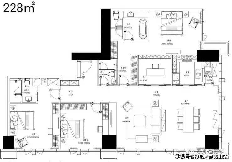 户型面积:68-228㎡,涵盖2至4房