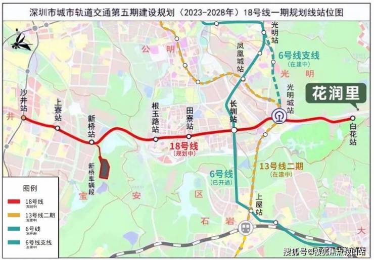 【地铁18号线】1站直达光明城站,换乘13号线(在建),6站到南山;