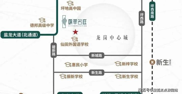 项目旁边为仙田外国语学校(九年制),二期自带12班幼儿园。1.5公里范围内有龙城高级中学东兴外国语学校(九年制)、龙岗区新梓学校(九年制)及德邦高级中学(高中)等,教育资源丰富。