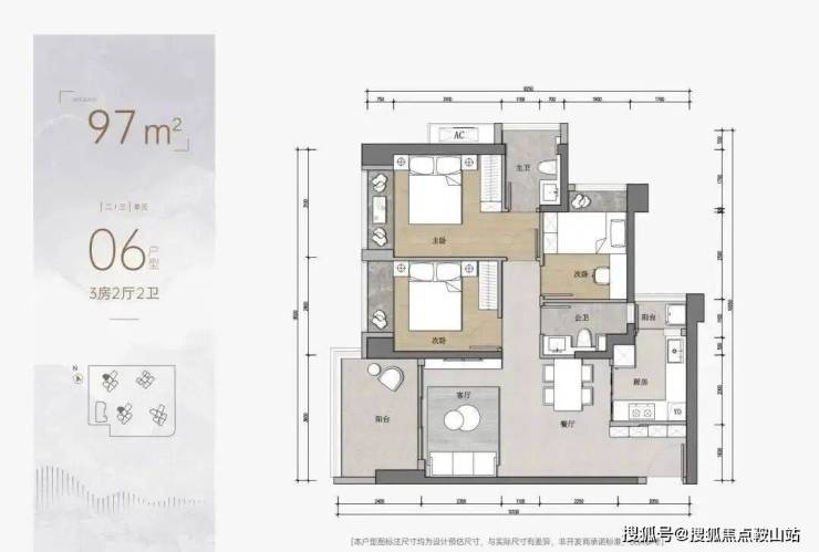 建面约97㎡的户型,产品不论是在功能设计上还是空间利用率上都是极其考究的。三开间朝南;双阳台的设计把每一片空间都高效利用,约3.6米开间,约2.4米进深奢阔景观阳台,让生活每天充满阳光与健康;厨房L型布局,一个转身即可完成洗、切、炒、取;黄金动线、操作流畅;厨房与生活阳台相连,明亮的采光会提升烹饪时的愉悦感。
