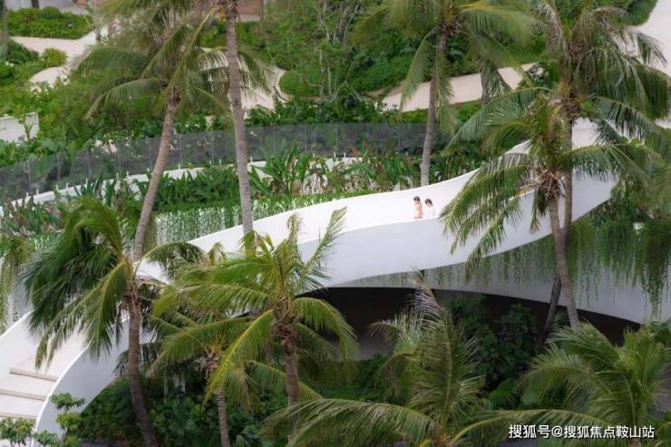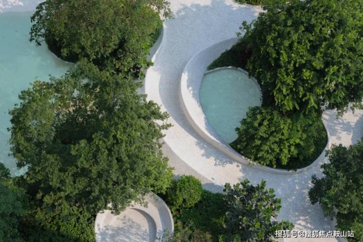 项目的核心空间是「山囿」。设计灵感来自三亚的山与海,将自然元素转译为贴近人尺度的景观形态。