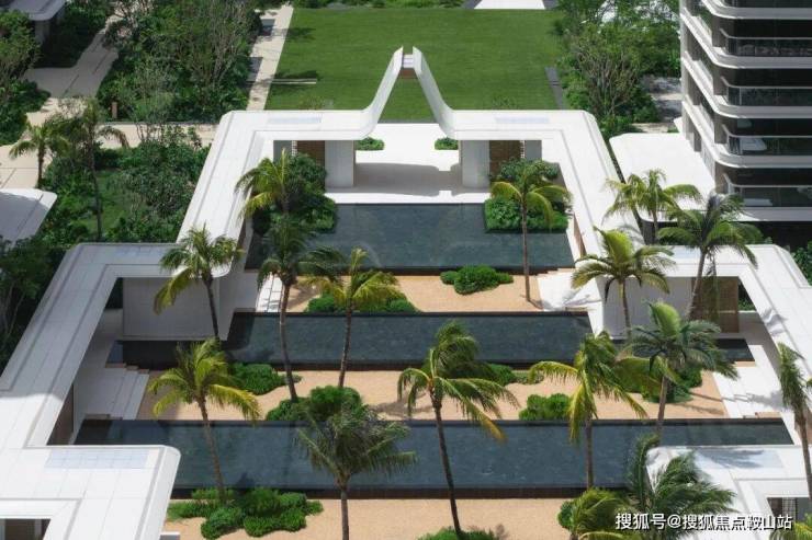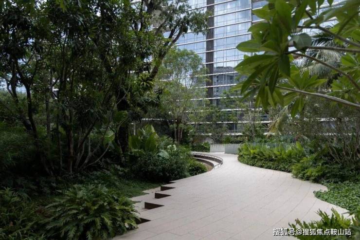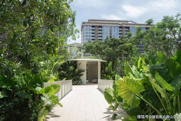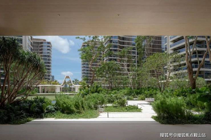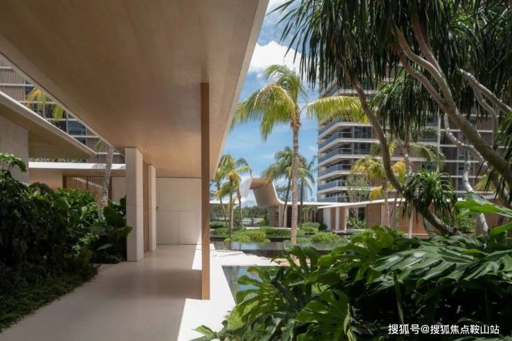 项目南侧的迎宾空间被命名为「林间」,以棕榈、蕨类、龙血树等本土植物迎接来访者。从进入场地的第一刻起,便让人仿佛走入一处静谧的海滨度假环境。