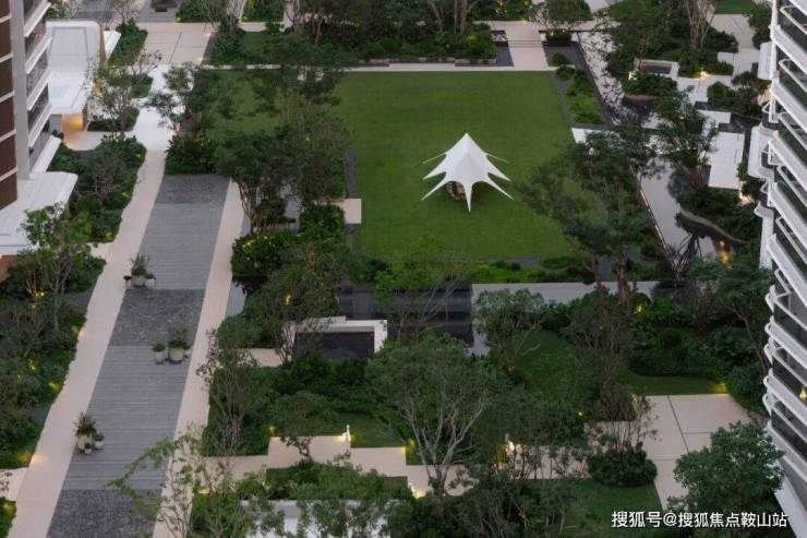 从这里,动线继续延伸至「绿台」,一处被树群环绕的下沉草坪空间。这里开放而放松,适合人们共享,同时仍能感受到自然所带来的包裹与庇护。