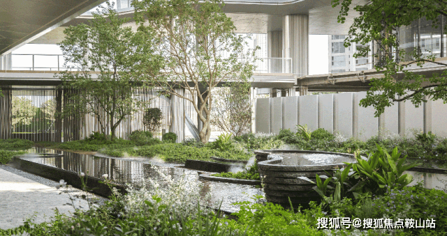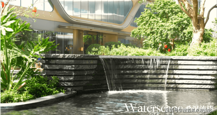 “有山皆是园,无水不成景”,跌水瀑布从层叠的青灰石阶上倾泻而下,打破了镜面水景原有的平静,溪水潺潺流淌,泛起层层涟漪,无形地增添了空间的层次感与艺术性。