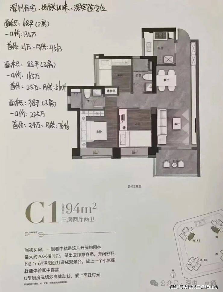 坪山卓越晟悦推出一口价单位,总价135万起,月供4500,深圳最低上车门槛红本商品房,楼下200米地铁口,叠加媒体大额返现,总价130万,单价1.9万即可上车。名额有限,先到先得。