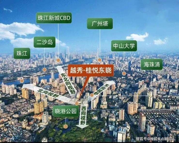 景观升级:东望中大、广州塔;北望二沙岛珠城,西南向直望晓港公园